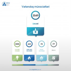 Müraciətlərdən 2378-i Agentlik tərəfindən araşdırılıb və cavablandırılıb (42 müraciət müvafiq qaydada baxılması və tədbir görülməsi üçün aidiyyəti quruma göndərilib), 7 müraciət Energetika Nazirliyi ilə müştərək icra olunub, 700 müraciət hazırda baxılma prosesindədir, 464 məlumat xarakterli müraciətdən 238-i qaldırılan problemlərin həlli ilə bağlı təşəkkür məktubu olub.