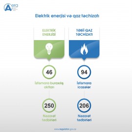 Həmçinin, elektrik qurğularının texniki istismarı, təhlükəsizlik texnikası qaydalarına əməl olunması və elektrik enerjisindən istifadənin vəziyyətinin araşdırılması məqsədilə 250 nəzarət tədbiri keçirilib.