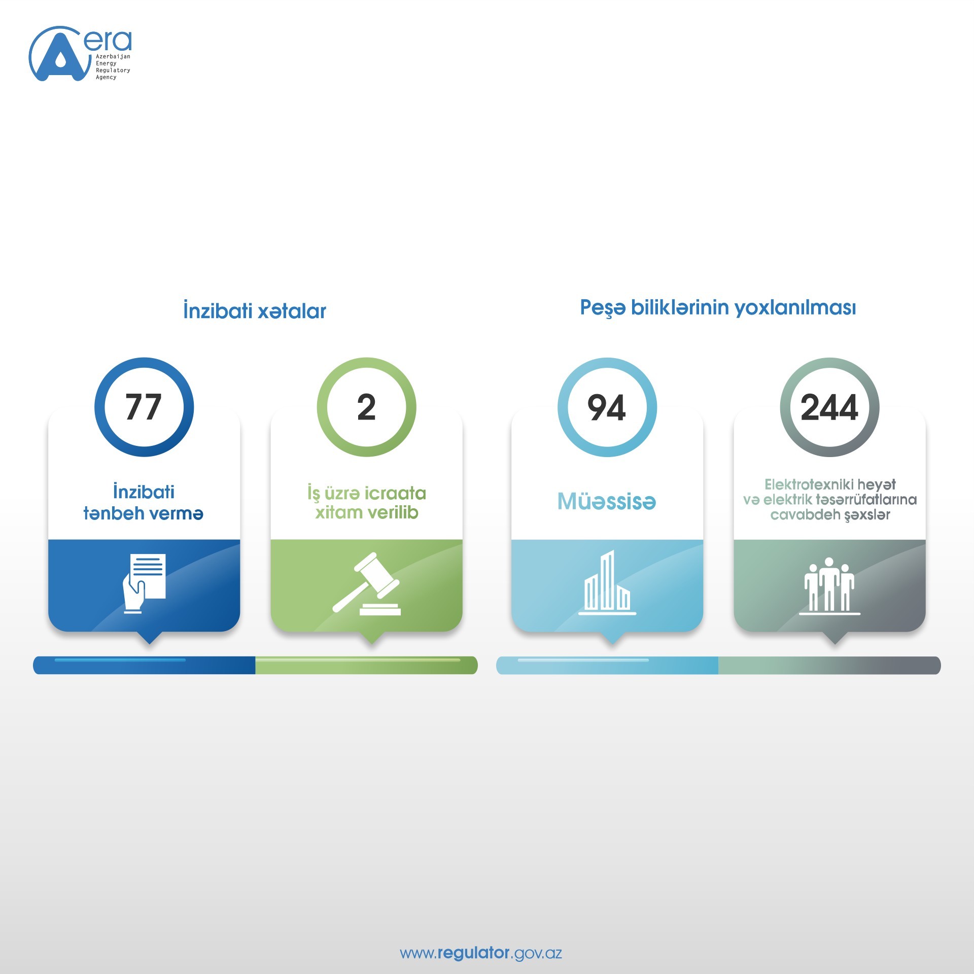 Agentlik tərəfindən hesabat dövrü ərzində 94 müəssisədə 244 nəfər olmaqla elektrotexniki heyətin və elektrik təsərrüfatlarına cavabdeh şəxslərin texniki istismar, təhlükəsizlik texnikası qaydaları üzrə peşə bilikləri yoxlanılıb, yoxlama nəticəsində biliklərin artırılması üzrə təkliflər verilib, bu istiqamətdə müvafiq şəxslərə metodiki yardım göstərilib.