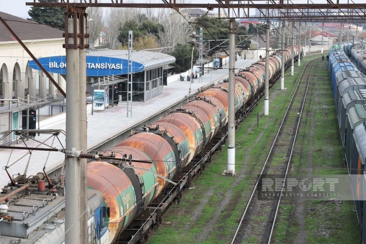 A freight train operated by Azerbaijan Railways CJSC (ADY) loaded 1,220 tons of AI-95 premium gasoline into 22 railcars, scheduled to reach the Boyuk-Kesik station in Aghstafa district by evening.