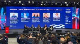 BOEMDA-dan verilən məlumata görə, Rəna Hümbətova “Dayanıqlı maliyyə və enerji sahəsində regional trendlər və inkişaflar” mövzusunda keçirilən panel sessiyasında çıxış edərək, Azərbaycanın bərpa olunan enerji sektoruna keçid prosesində qarşılaşdığı əsas problemlər və nailiyyətlər haqqında danışıb.