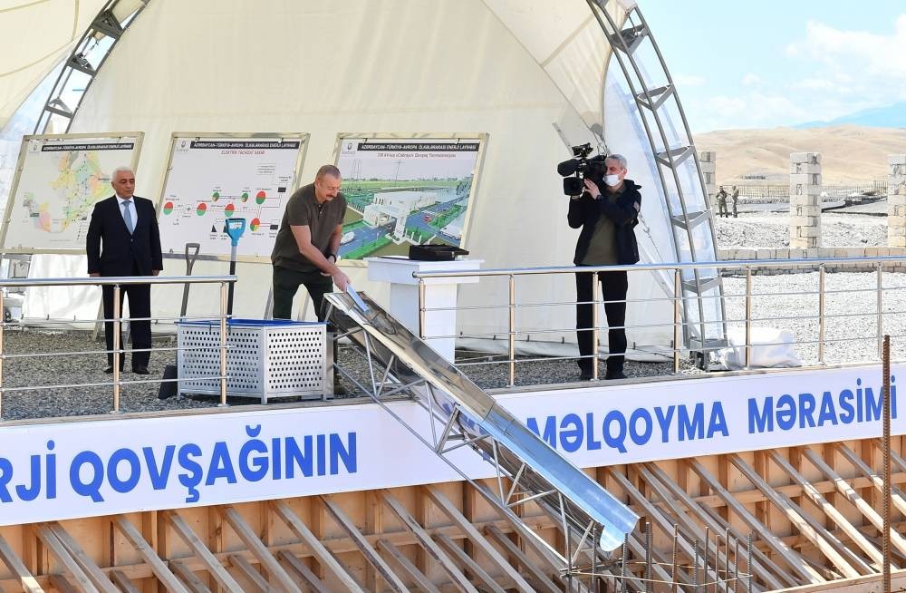 President Ilham Aliyev laid the foundation of the Jabrayil energy junction. It was noted that a 132-kilometer 330-kilovolt transmission line will be laid to Jabrayil from the “Aghjabadi” substation and a 130-kilometer line from the “Imishli” substation. Most importantly, a 330-kilovolt junction substation will be built in Jabrayil. As a result of the construction of the Jabrayil energy junction, the reliability and sustainability of the newly established transmission network of Karabakh and East Zangazur will be significantly increased. At the second stage, a two-circuit 330-kilovolt transmission line will be extended and a 330-kilovolt “Shahtakhti” substation will be built at a distance of 255 km from the “Jabrayil” junction substation to the Shahtakhti village of the Nakhchivan Autonomous Republic via the “Jabrayil” junction substation in order to connect Nakhchivan with the country's main power system. As part of the third stage, an additional conversion substation will be built in accordance with European energy standards to increase the 330-kilovolt to 400-kilovolt in the vicinity of Nakhchivan, and a two-phase 400-kilovolt power transmission line will be laid 230 kilometers from Nakhchivan to Turkiye.